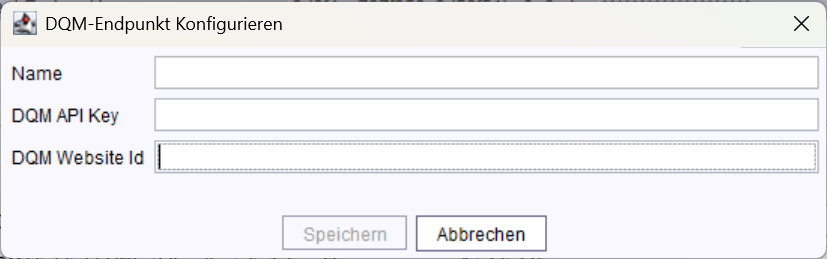 - Tragen Sie einen Namen, die DQM Website-ID, und den DQM API-Key ein. Der Name dient zu Anzeige und Differenzierung unterschiedlicher Website-IDs. Website-ID und API-Key werden Ihnen vom Crownpeak-Kundensupport bereitgestellt.